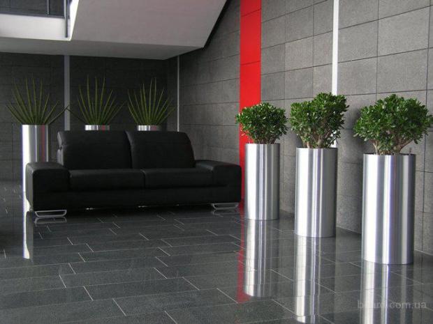 В комнатах ярких, неоднозначных, в качестве аксессуара применяют напольные горшки без флоры.