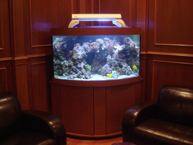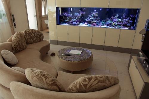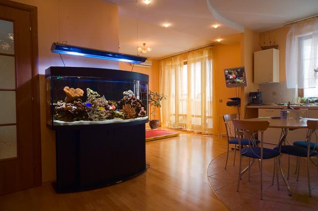 Рифовый аквариум в гостиной: водоросли и интерьер