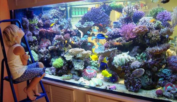 Коралловые рыбки, цвета которых придуманы природой, на фоне кораллов кажется жителями сказочного царства. Если ваши дети уже перешагнули подростковый рубеж, то рифовый аквариум небольших размеров можно вмонтировать в стену детской комнаты. Рыбки в соленой воде воспринимают палец того, кто насыпает корм на поверхность воды, в качестве родителя, поэтому весело подпрыгивают, пытаясь дотронуться до него.