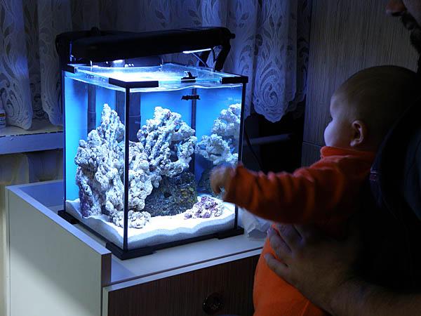 Морскую же воду приходится сливать полностью, да и смешивать ее дополнительные литры придется за несколько дней до восполнения резервуара недостающим количеством жидкости. Ее обычно хранят в закрытой тумбе, чтобы солнечные лучи до смеси не доставали.