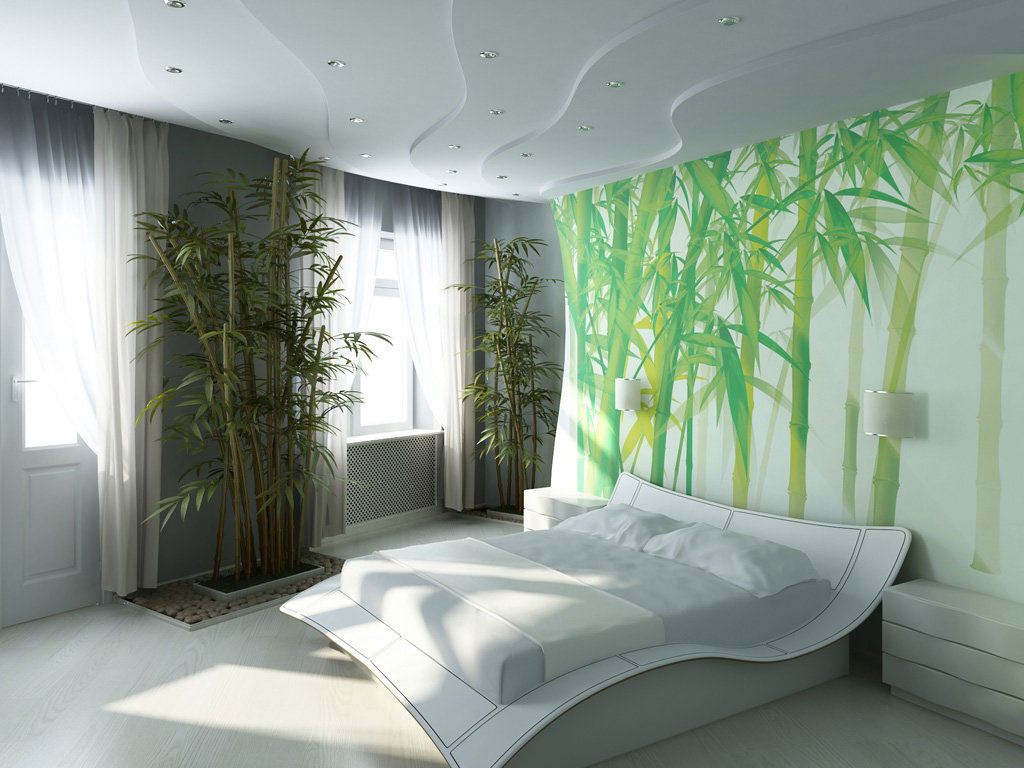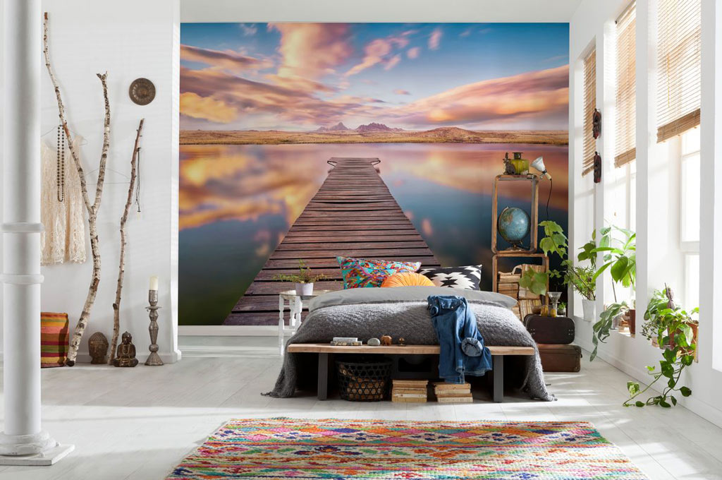 В зависимости от своих предпочтений выбирайте динамичность изображения и его сюжет. Южное расположение окон спальни предполагает выбор прохладной палитры – открытых водоемов, туманного леса, заброшенного парка. Окна на север будут хорошо сочетаться с яркими песочными пляжами, солнечными полянами и изображением летнего полудня.