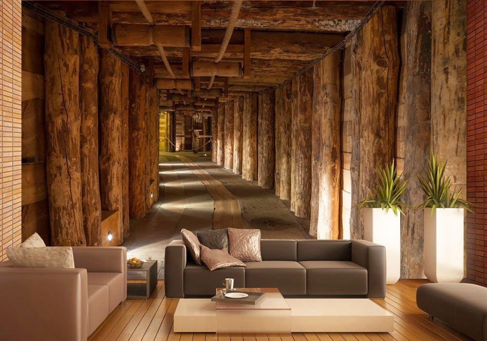 - Имитация камня, дерева или кирпичной кладки создаст эффект наличия натуральных материалов без ущерба для занимаемого пространства.