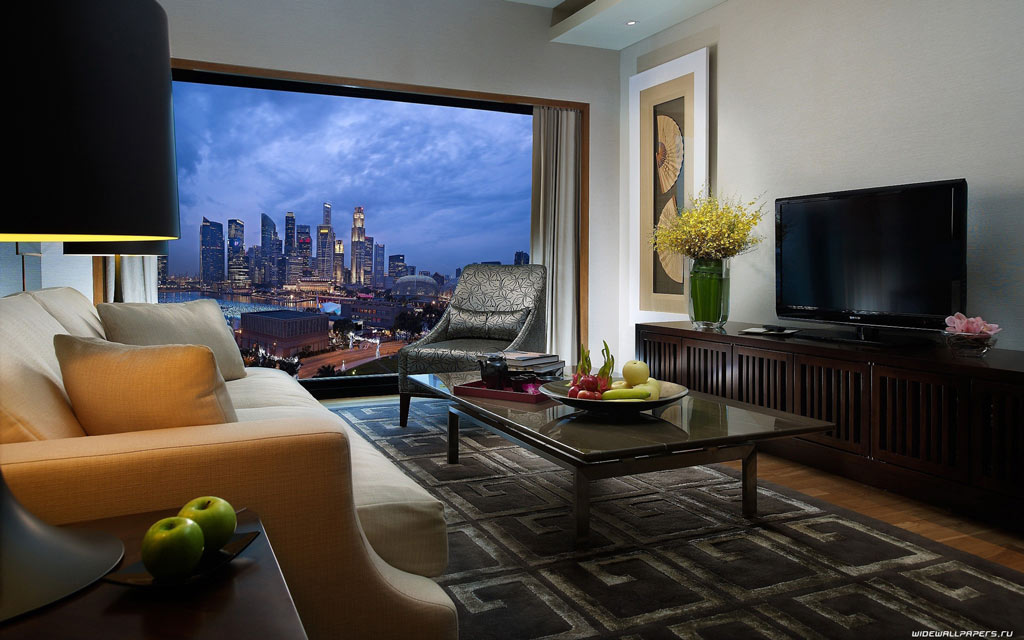 Городской пейзаж – актуальная тема для гостиной, которая выглядит свежо и современно. Это может быть город, в котором вы мечтали побывать, или же любимое место отдыха всей семьи.