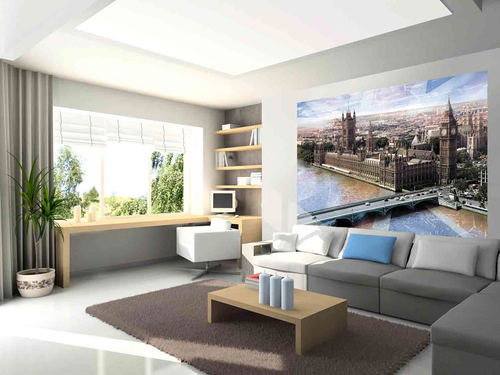 Большая площадь самого популярного и посещаемого помещения дома предполагает создание уютной атмосферы на принципах функциональности и комфорта с выделением акцента в виде одной или двух стен. Ведь именно здесь собираются гости и вся семья, проводят домашние праздники. Фотообои помогут создать запоминающийся образ для оригинального вида помещения, воплощения творческих идей и успешной реализации этих задач.