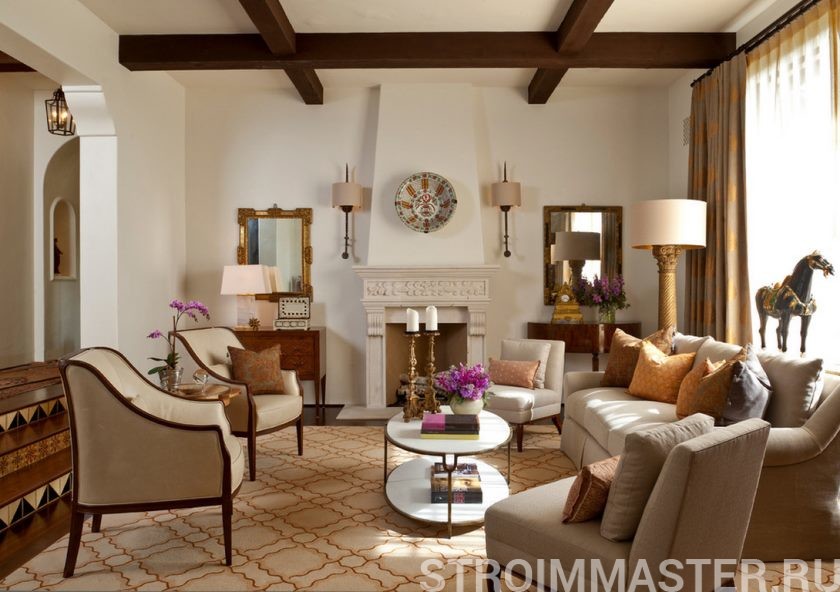 Если вы примете решение о создании в вашей гостиной итальянского интерьера, знайте, что главное в нем — гармония во всем. Сбалансированные, тонко сопоставленные узоры и цвета придадут вашей комнате свой уникальный средиземноморский характер и возвышенный вид. Материалы, используемые для отделки всего помещения, должны быть натуральными и согласованными с точки зрения текстуры и цвета, чтобы создавать одно целое. Каменные полы, деревянная мебель, лепные украшения и текстиль в их самой благородной форме — здесь преобладают качество, изящество и сбалансированная пропорция между всеми элементами. Такое пропорционально готовое пространство станет идеальной базой для мебели и аксессуаров.
