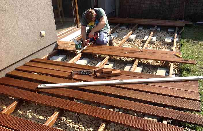 3. Работа с деревом: установка лаг и монтаж террасной доски